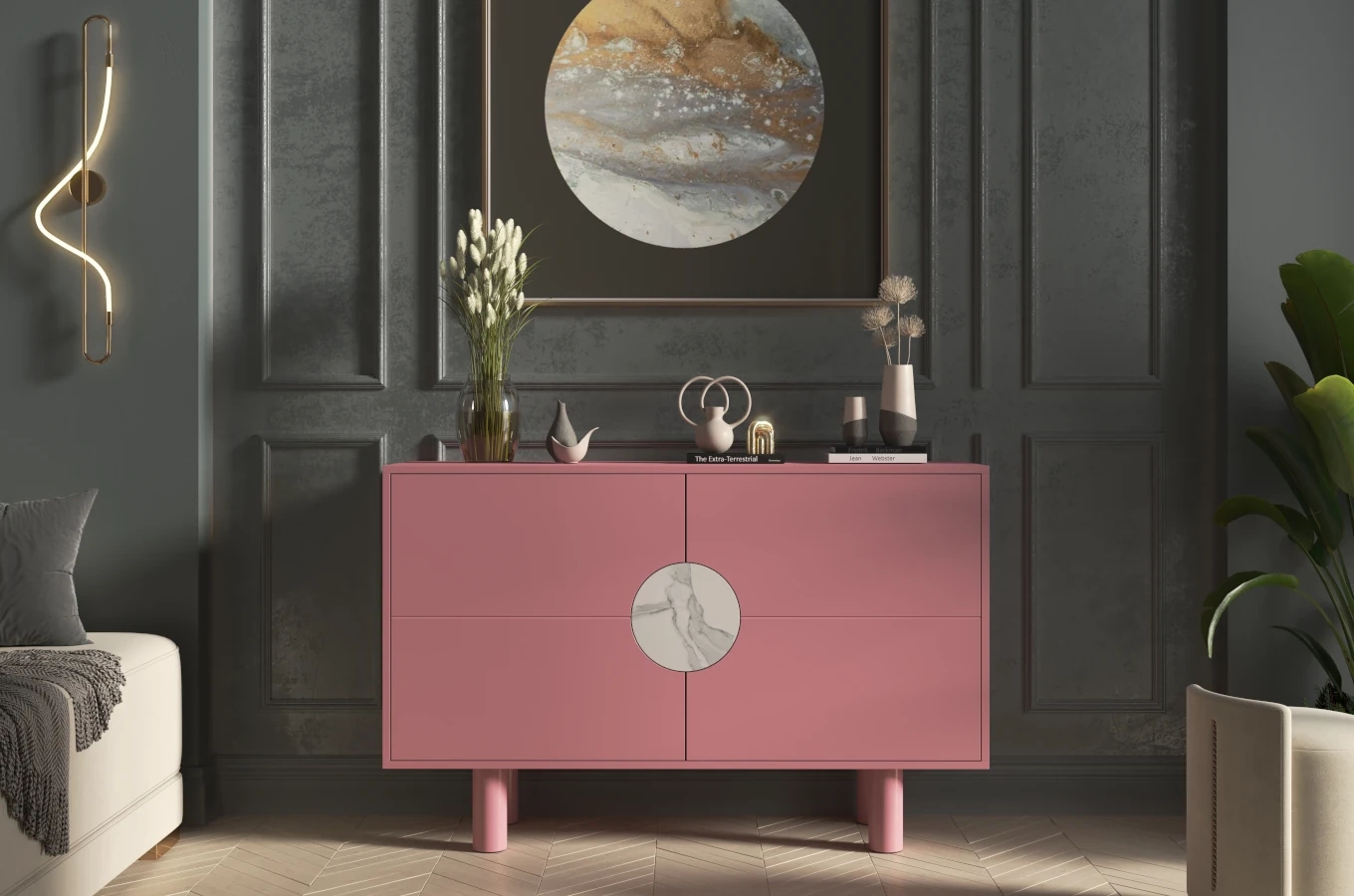 Nowoczesna komoda z marmurem Dancan ZOE 2D / kolor pudrowy róż / szer. 140 cm