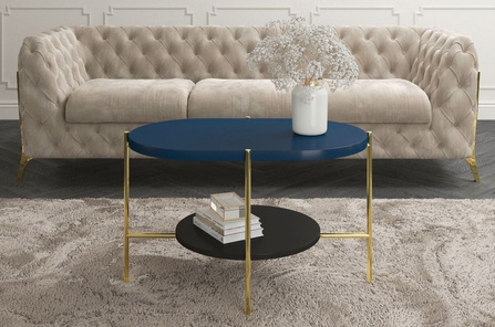 Nowoczesny stolik kawowy Dancan ARENA / złota podstawa + granatowy i czarny blat