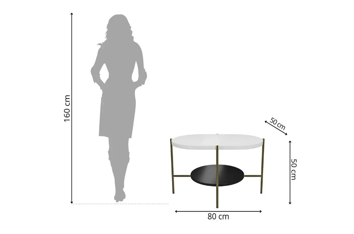 ARENA to projekt, który łamie symetrię z pełną premedytacją. Dwa kontrastujące blaty – owalny górny w subtelnej bieli i okrągły dolny w eleganckiej czerni – tworzą zaskakującą, ale idealnie wyważoną kompozycję. Osadzone na lekkim, metalowym stelażu o nieregularnej konstrukcji, przyciągają wzrok i nadają wnętrzu wyrazistości. Różnice w grubości blatów i ich układ nie są przypadkowe – wszystko tu gra formą i kolorem. Efekt? Mebel, który działa jak funkcjonalna rzeźba. I choć wygląda artystycznie, pozostaje praktyczny – dzięki dolnemu poziomowi zyskujesz dodatkową powierzchnię, którą łatwo wykorzystać.