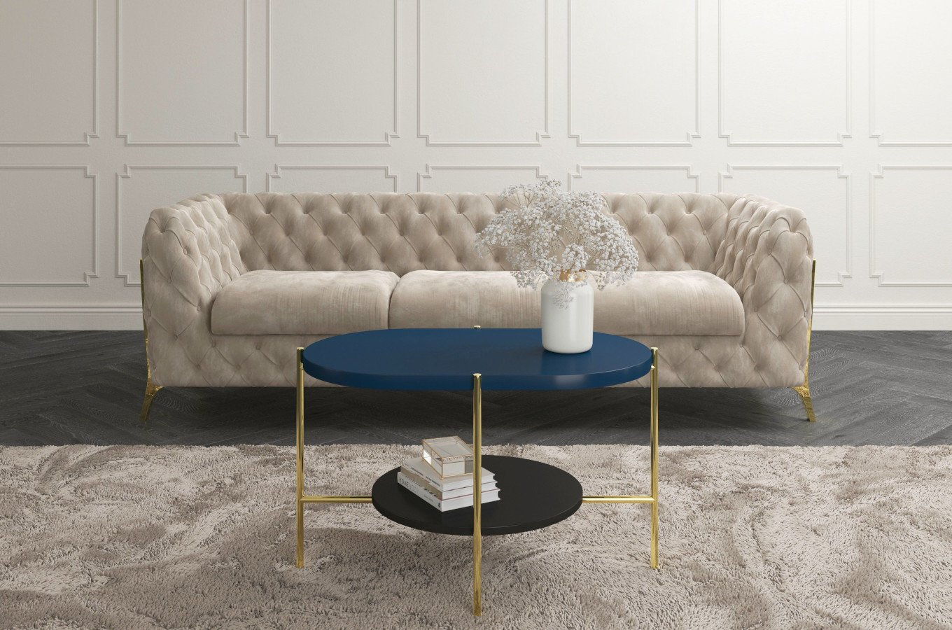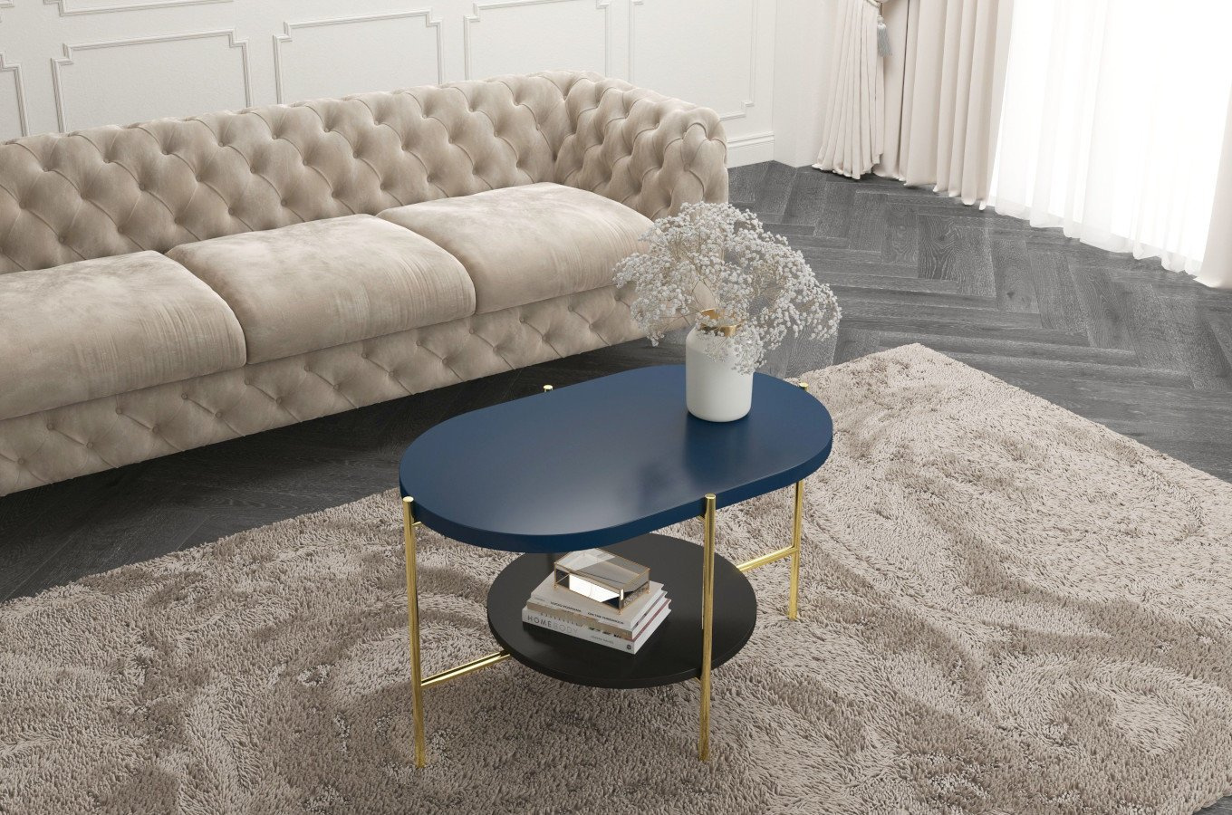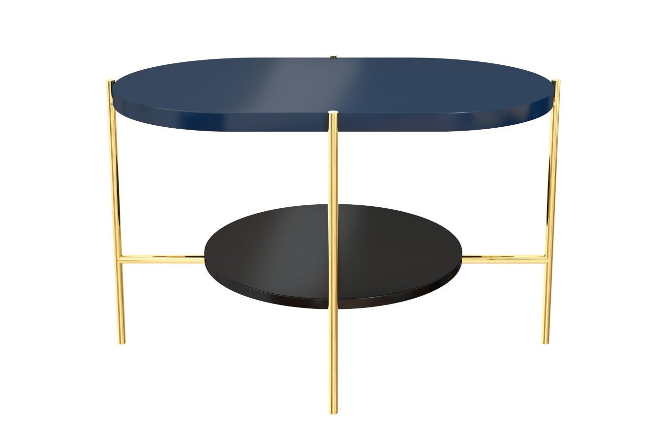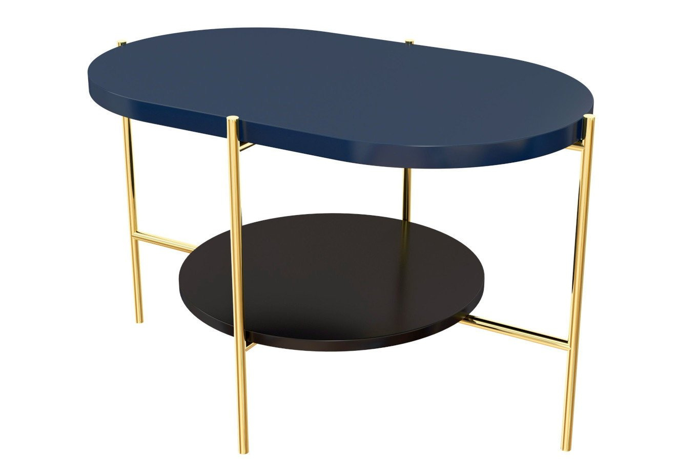 ARENA to projekt, który łamie symetrię z pełną premedytacją. Dwa kontrastujące blaty – owalny górny w głębokim granacie i okrągły dolny w eleganckiej czerni – tworzą zaskakującą, ale idealnie wyważoną kompozycję. Osadzone na lekkim, metalowym stelażu o nieregularnej konstrukcji, przyciągają wzrok i nadają wnętrzu wyrazistości. Różnice w grubości blatów i ich układ nie są przypadkowe – wszystko tu gra formą i kolorem. Efekt? Mebel, który działa jak funkcjonalna rzeźba. I choć wygląda artystycznie, pozostaje praktyczny – dzięki dolnemu poziomowi zyskujesz dodatkową powierzchnię, którą łatwo wykorzystać.