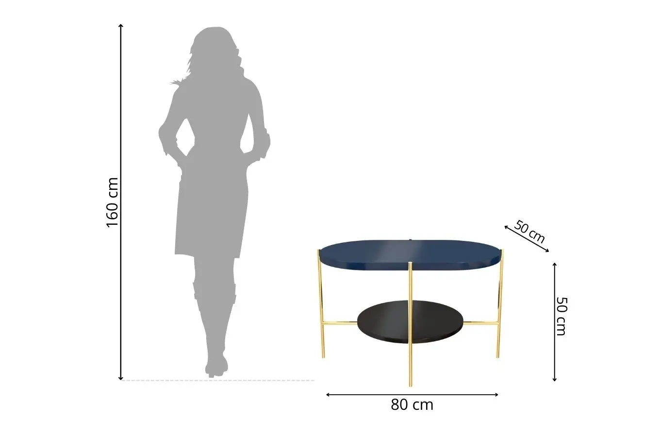 - Dolny blat: średnica 50 cm (46,5 cm średnica blatu)
